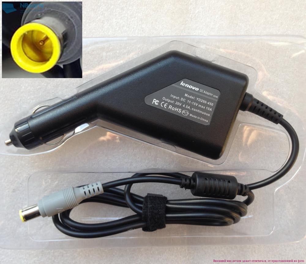 Автомобильное зарядное устройство для ноутбука Lenovo 90W, 20V 4.5A, 7.9x5.5