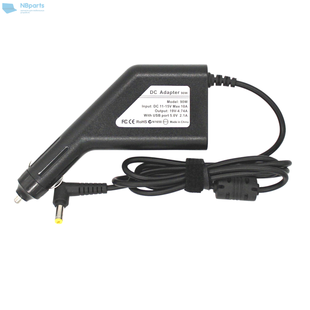 Автомобильное зарядное устройство для ноутбука Acer 90W, 19V 4.74A, 5.5x1.7