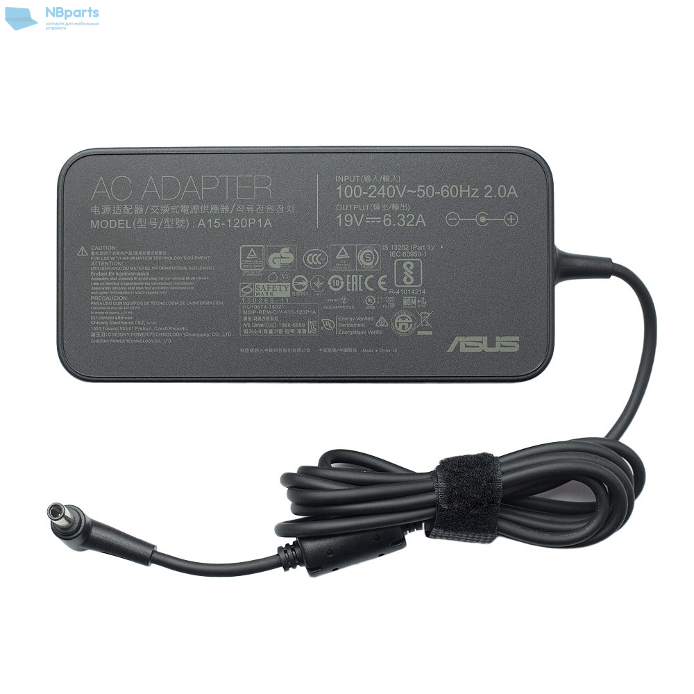 Блок питания (зарядное устройство) для ноутбука Asus 120W, 19V 6.3А, 5.5x2.5 , A15-120P1A, оригинал с сетевым кабелем