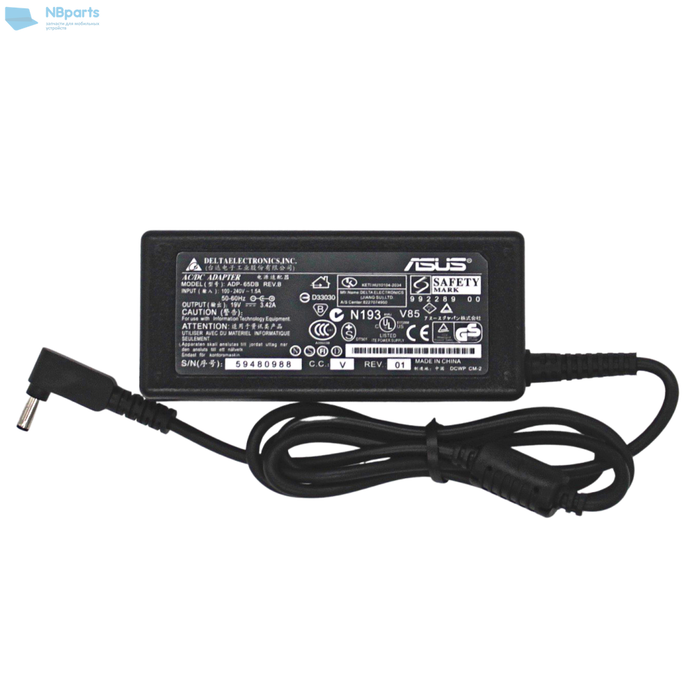 Блок питания (зарядное устройство) для ноутбука Asus 65W, 19V 3.42A, 4.5x3.0, ADP-65AW, оригинал без сетевого кабеля