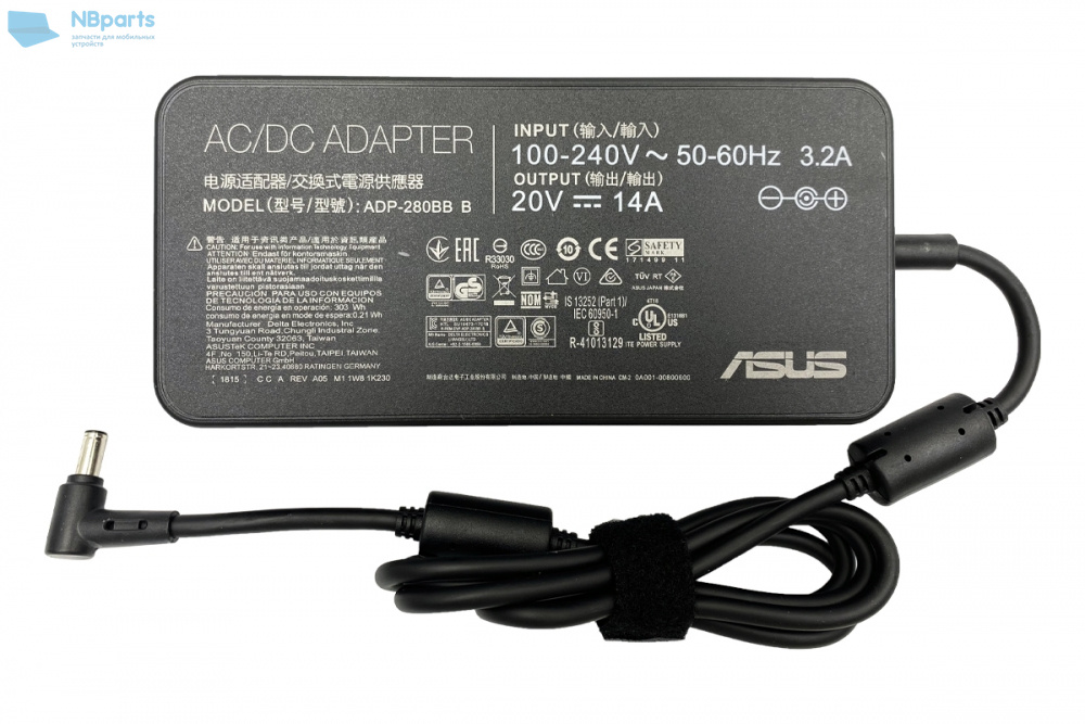 Блок питания (зарядное устройство) для ноутбука Asus 280W, 20V 14A, 6.0x3.7, ADP-280BB B, оригинал с сетевым кабелем