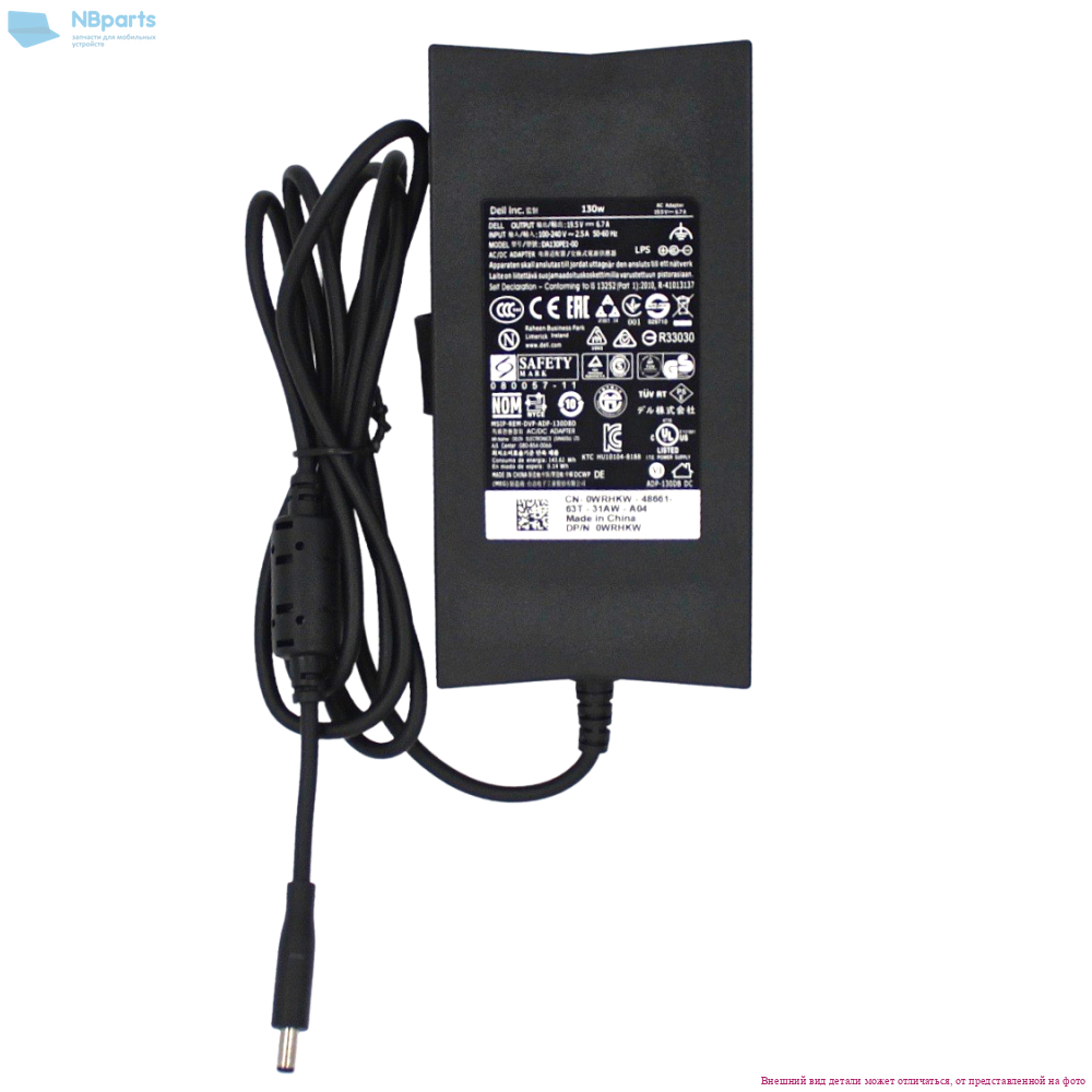 Блок питания (зарядное устройство) для ноутбука Dell 130W, 19.5V 6.7A, 4.5x3.0, ADP-130DB, копия без сетевого кабеля