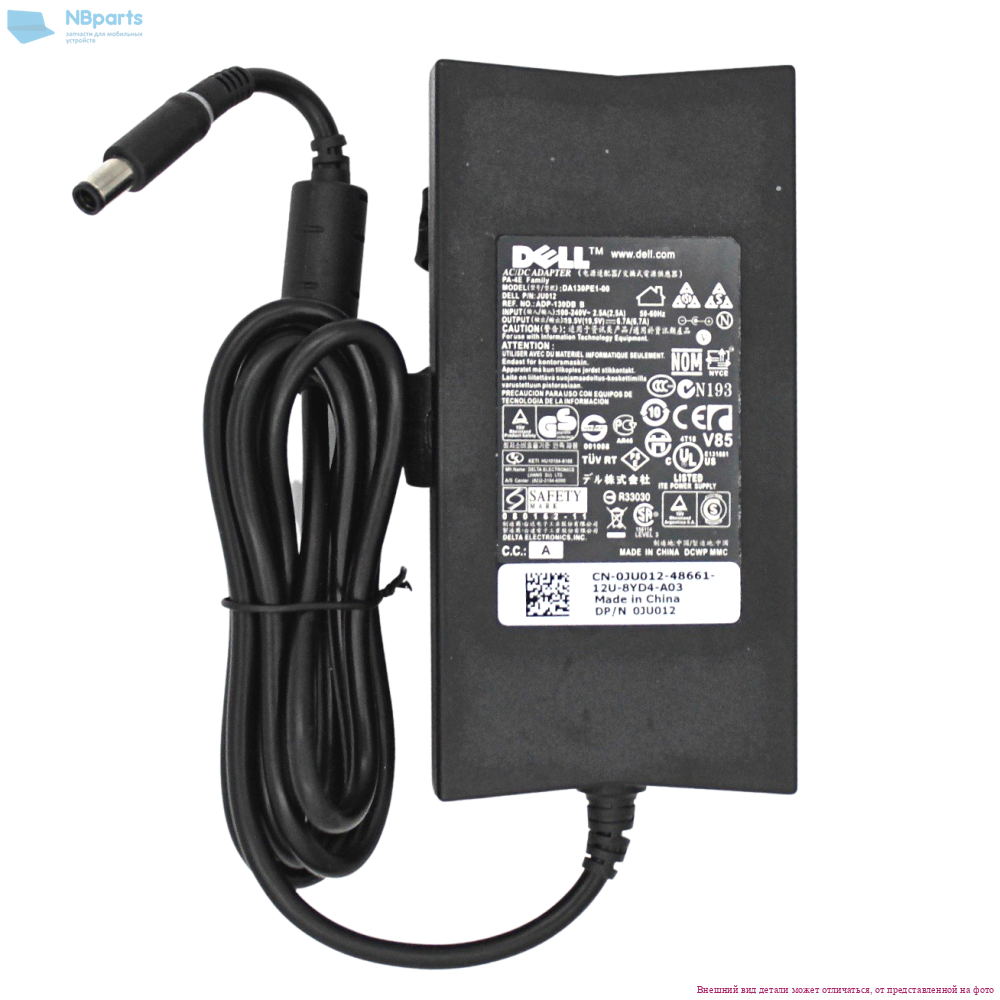 Блок питания (зарядное устройство) для ноутбука Dell 130W, 19.5V 6.7A, 4.5x3.0, 0JU012, оригинал с сетевым кабелем
