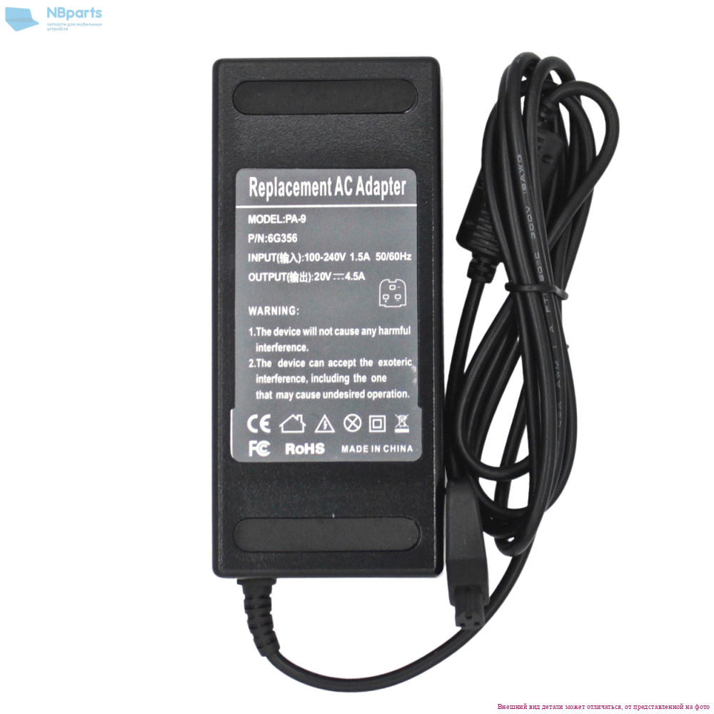 Блок питания (зарядное устройство) для ноутбука 90W, 20V 4.5A, Подкова (3-Pin Square Tip), копия без сетевого кабеля