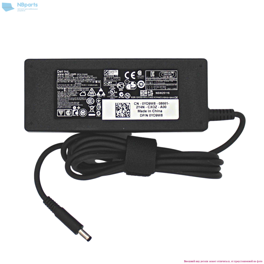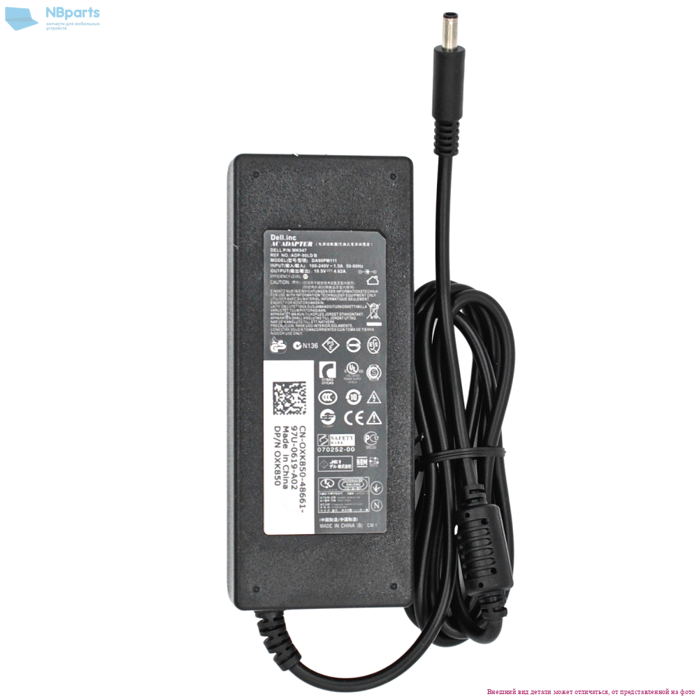 Блок питания (зарядное устройство) для ноутбука Dell 90W, 19.5V 4.62A, 7.4x5.0mm 3-pin, копия без сетевого кабеля