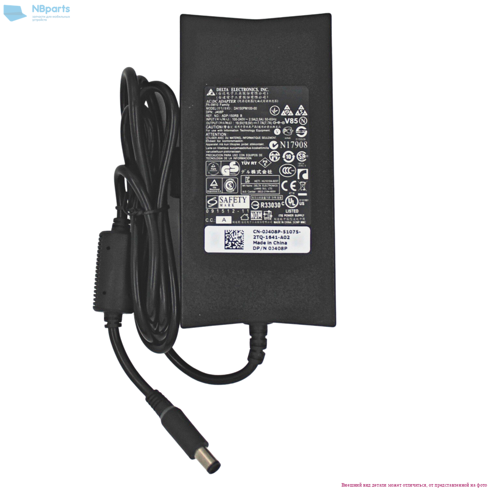 Блок питания (зарядное устройство) для ноутбука Dell 150W, 19V 7.7A, 7.4x5.0, KFY89, оригинал, Slim с сетевым кабелем