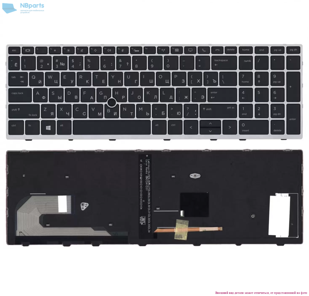 Клавиатура для ноутбука HP EliteBook 850 G5 755 G5, чёрная, с подсветкой, Trackpoint, с серой рамкой