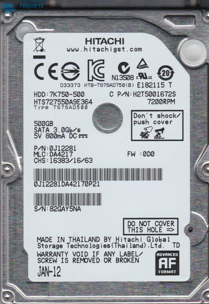 HDD SATA HITACHI 500Gb из ноутбука HTS727550A9E364 ИН
